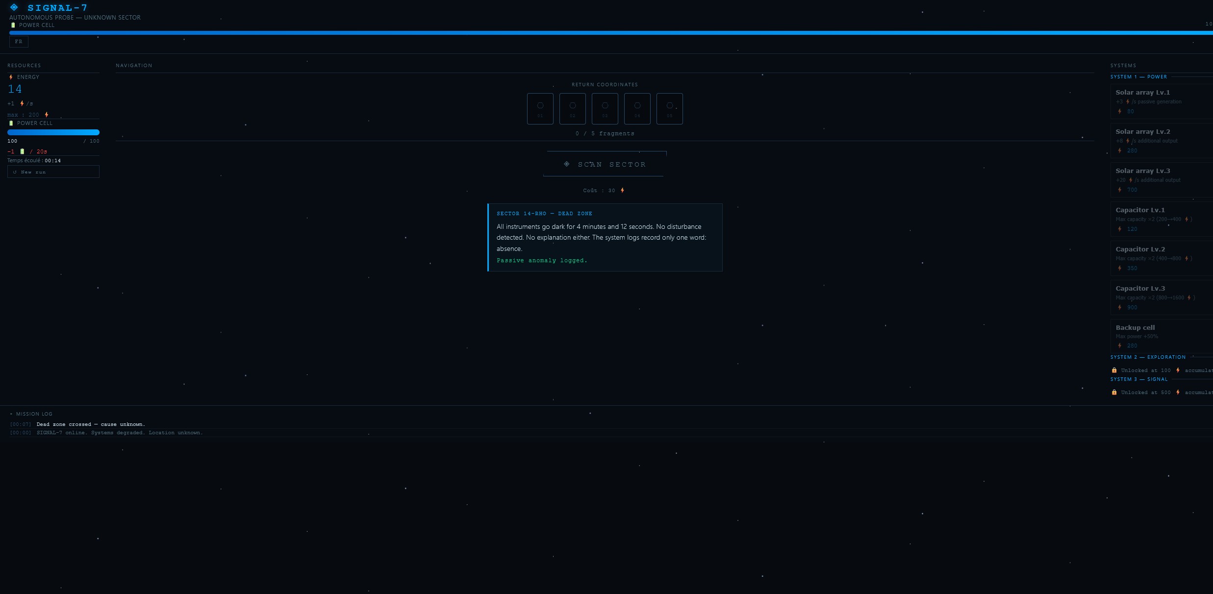 A navigation incident scattered your return coordinates to Earth across space. Your power cell is draining. Time is short.