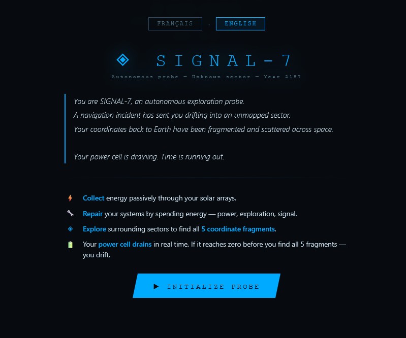 | Tags | Atmospheric, browser, Idle, Incremental, Narrative, Sci-fi, Short, Singleplayer, Space, Text based |